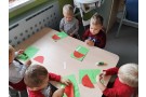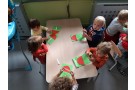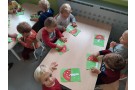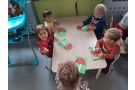 Dzieci wyklejały muchomorki z plasteliny.