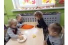 Dzieci poznały kształt dyni, jej nasionka oraz wykleiły dynię plasteliną.